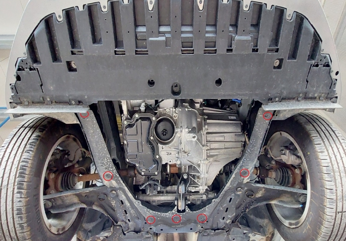 | Chaque voiture a des trous de vis fabriqués en usine pour le montage de la plaque de protection, ce qui rend le montage très facile. Vous pouvez le faire vous-même ou à n'importe quel point de service automatique. |