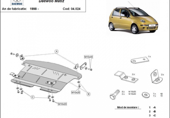Protection sous moteur et de la boîte de vitesse Daewoo Matiz (1998-2004)
