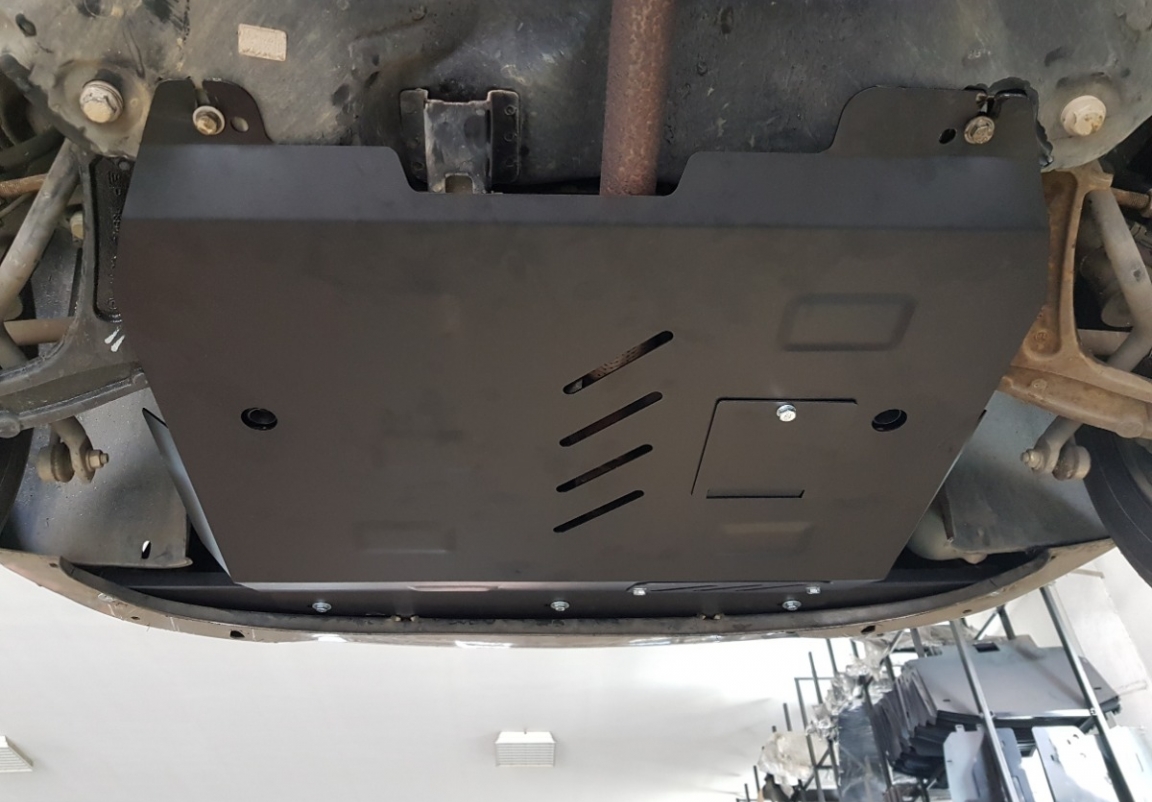Le cache métallique protège: le bas du moteur, la boîte de vitesses, radiateur, pare-choc avant Il y a une ouverture pour le carter d'huile, il n'est donc pas nécessaire de l'enlever pour changer l'huile. Le cache de protection est réalisé en Acier thermolaqué avec une épaisseur de 2 mm. Vis, écrous, pinces, tous les accessoires de fixation sont inclus. Toutes les plaques de protection sont revêtues de poudre pour prévenir la corrosion. L'extérieur de la plaque de protection est doté de renforts en Acier thermolaqué, ce qui augmente la résistance aux chocs. |