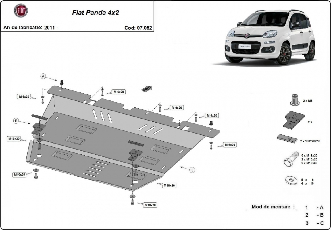 Protection sous moteur et de la boîte de vitesse Fiat Panda 4x2 (2011-2026)
