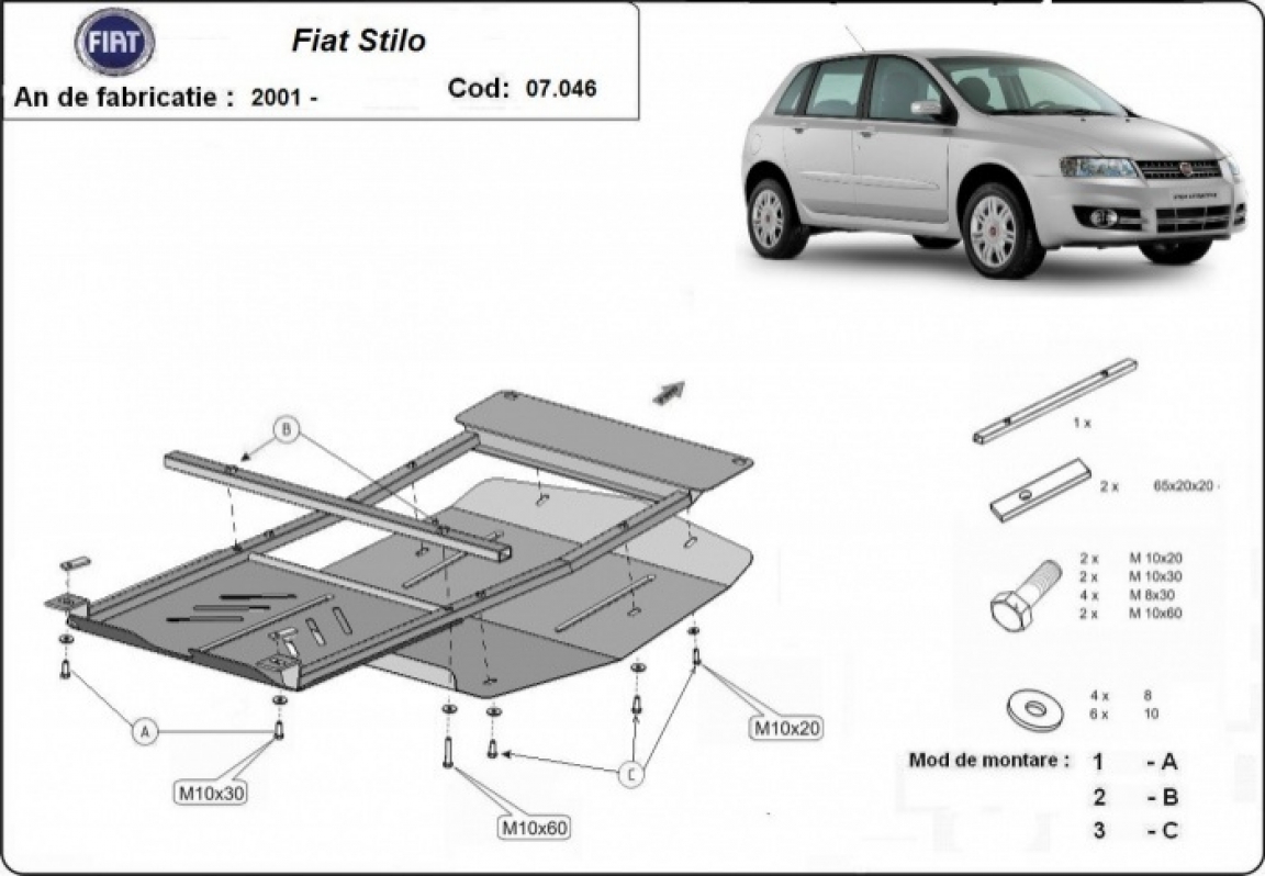 Protection sous moteur et de la boîte de vitesse Fiat Stilo (2001-2010)