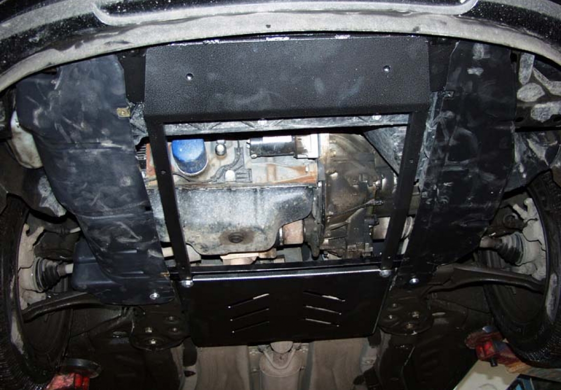 Le cache métallique protège: le bas du moteur, la boîte de vitesses Le cache de protection est réalisé en Acier thermolaqué avec une épaisseur de 2 mm. Vis, écrous, pinces, tous les accessoires de fixation sont inclus. Toutes les plaques de protection sont revêtues de poudre pour prévenir la corrosion. L'extérieur de la plaque de protection est doté de renforts en Acier thermolaqué, ce qui augmente la résistance aux chocs. |