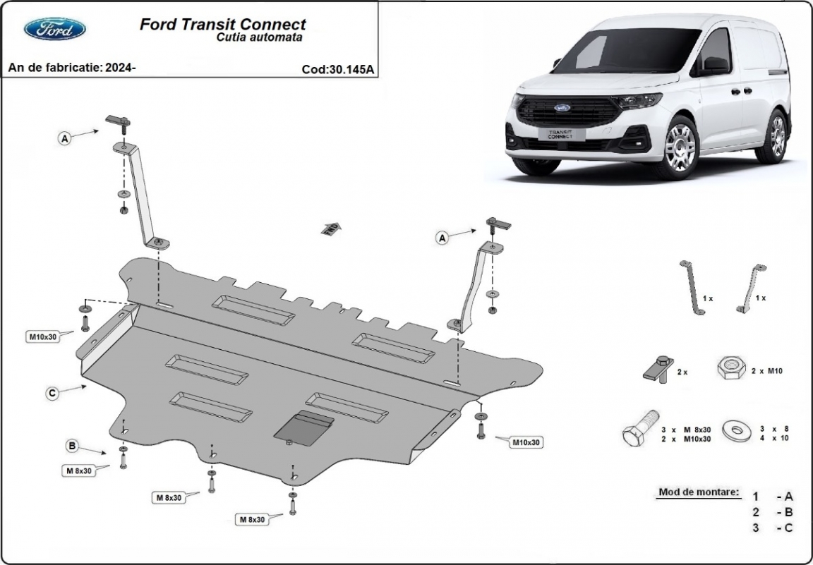 Protection sous moteur et de la boîte de vitesse Ford Transit Connect- Boîte de vitesse automatique (2024-2026)
