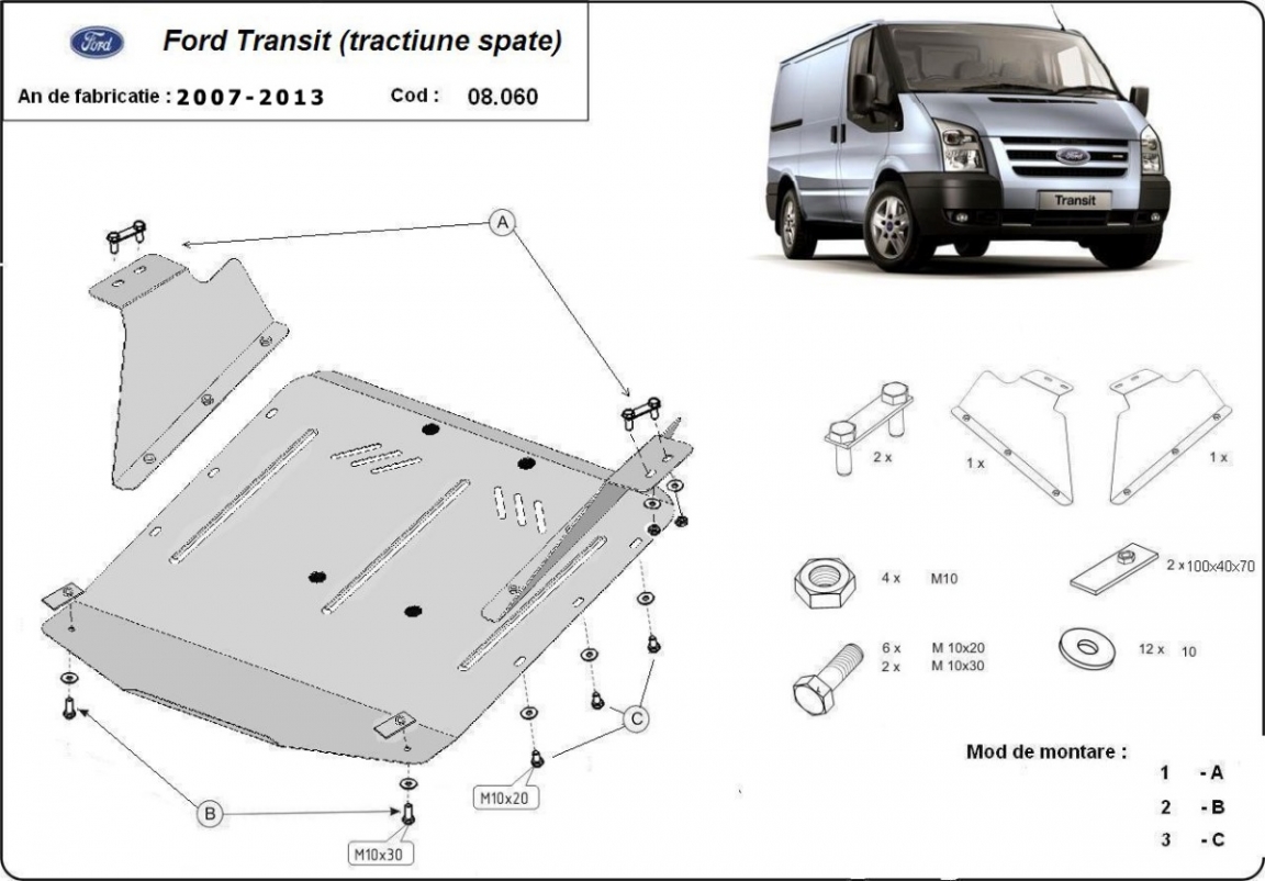 Protection sous moteur et de la boîte de vitesse Ford Transit - Propulsion (2007-2013)