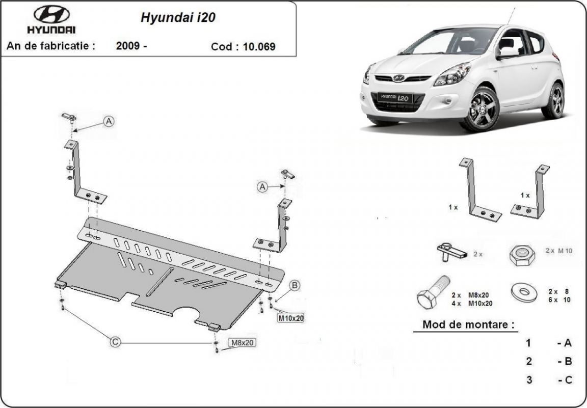 Protection sous moteur et de la boîte de vitesse Hyundai i 20 (2009-2014)