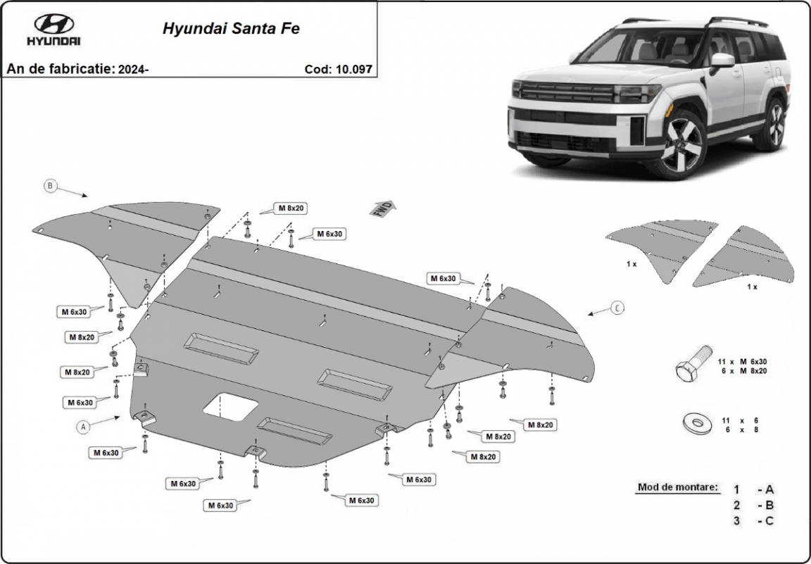 Protection sous moteur et de la boîte de vitesse Hyundai Santa Fe (2024-2026)