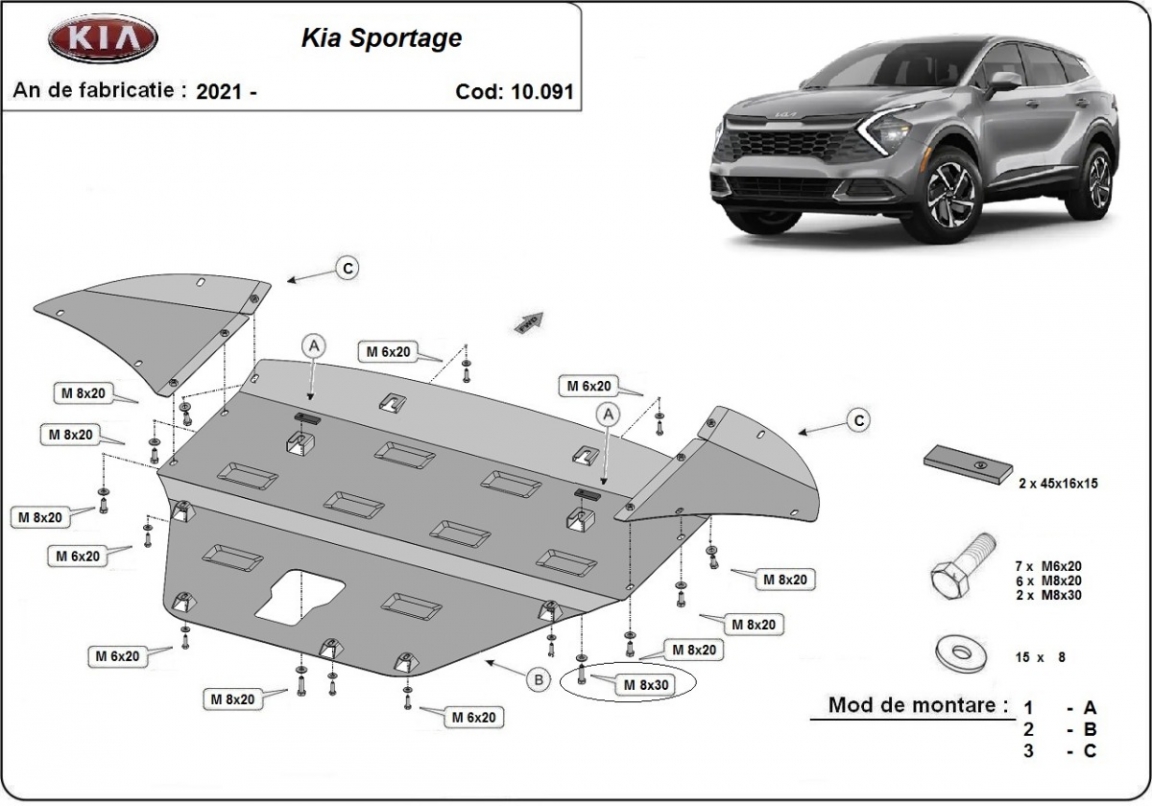 Protection sous moteur et de la boîte de vitesse Kia Sportage