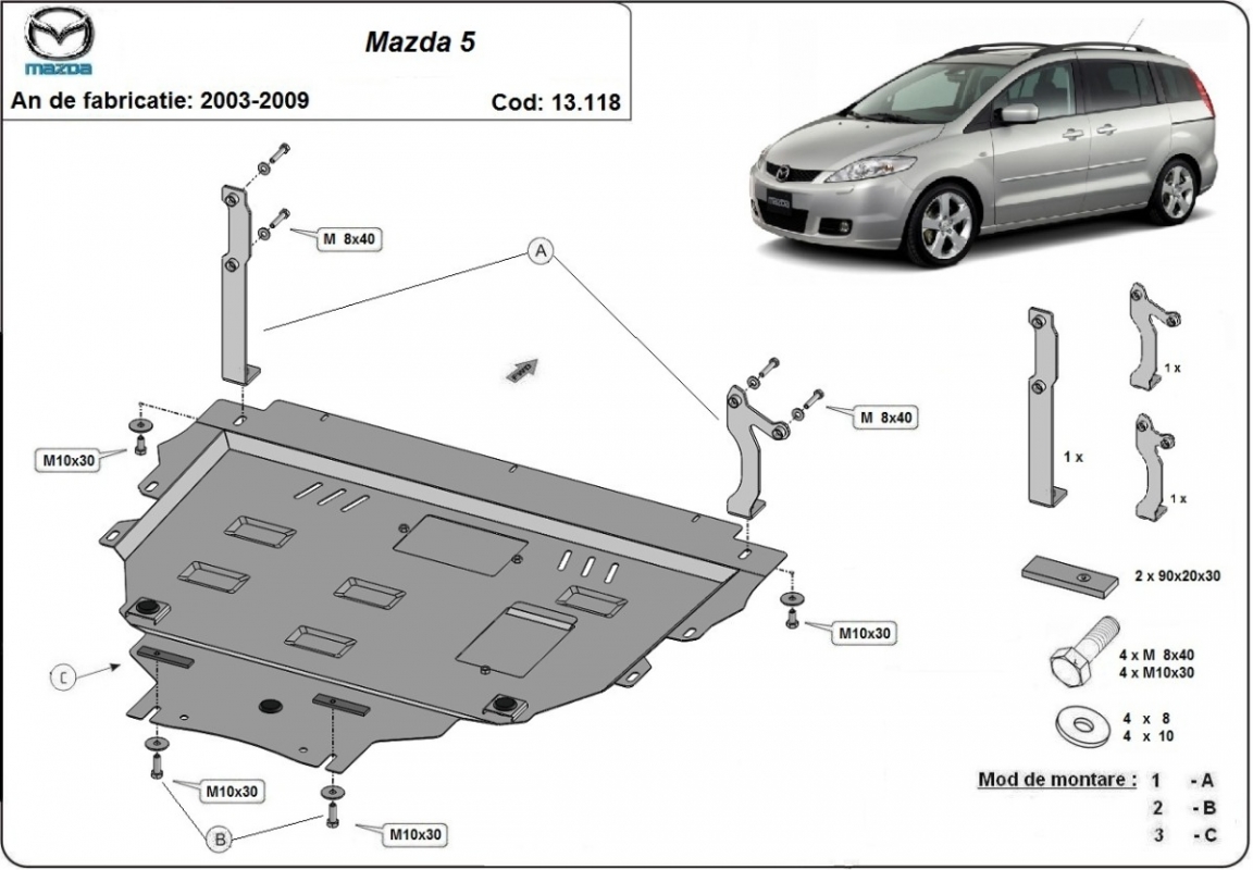 Protection sous moteur et de la boîte de vitesse Mazda 5 (2003-2009)