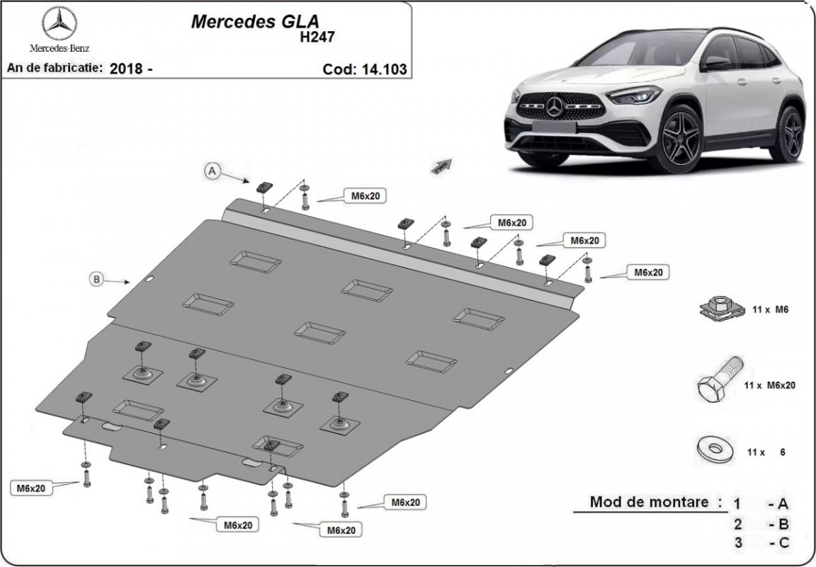 Protection sous moteur et de la boîte de vitesse Mercedes GLA H247 (2019-2026)