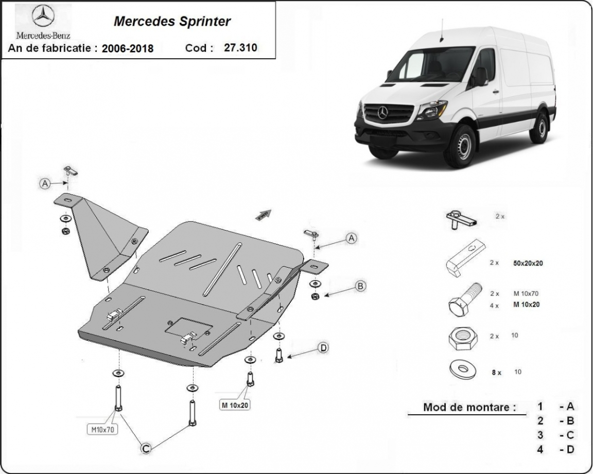 Protection sous moteur et de la boîte de vitesse Mercedes Sprinter