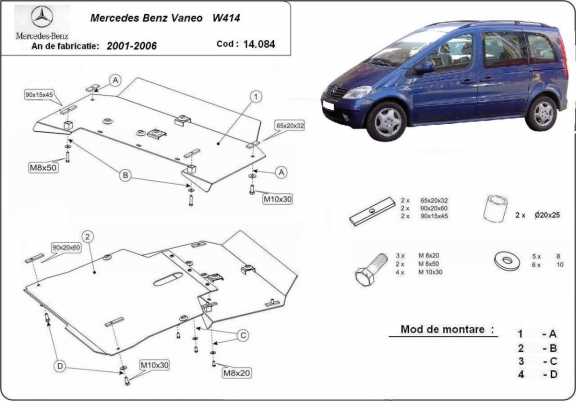Protection sous moteur et de la boîte de vitesse Mercedes Vaneo W414 (2001-2006)