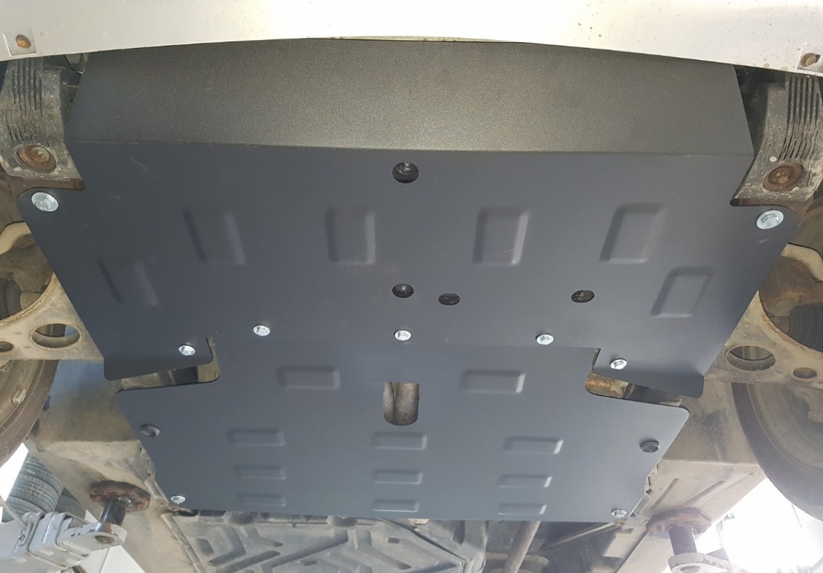 Le cache métallique protège: le bas du moteur, la boîte de vitesses, radiateur, pare-choc avant Le cache de protection est réalisé en Acier thermolaqué avec une épaisseur de 2 mm. Vis, écrous, pinces, tous les accessoires de fixation sont inclus. Toutes les plaques de protection sont revêtues de poudre pour prévenir la corrosion. L'extérieur de la plaque de protection est doté de renforts en Acier thermolaqué, ce qui augmente la résistance aux chocs. |