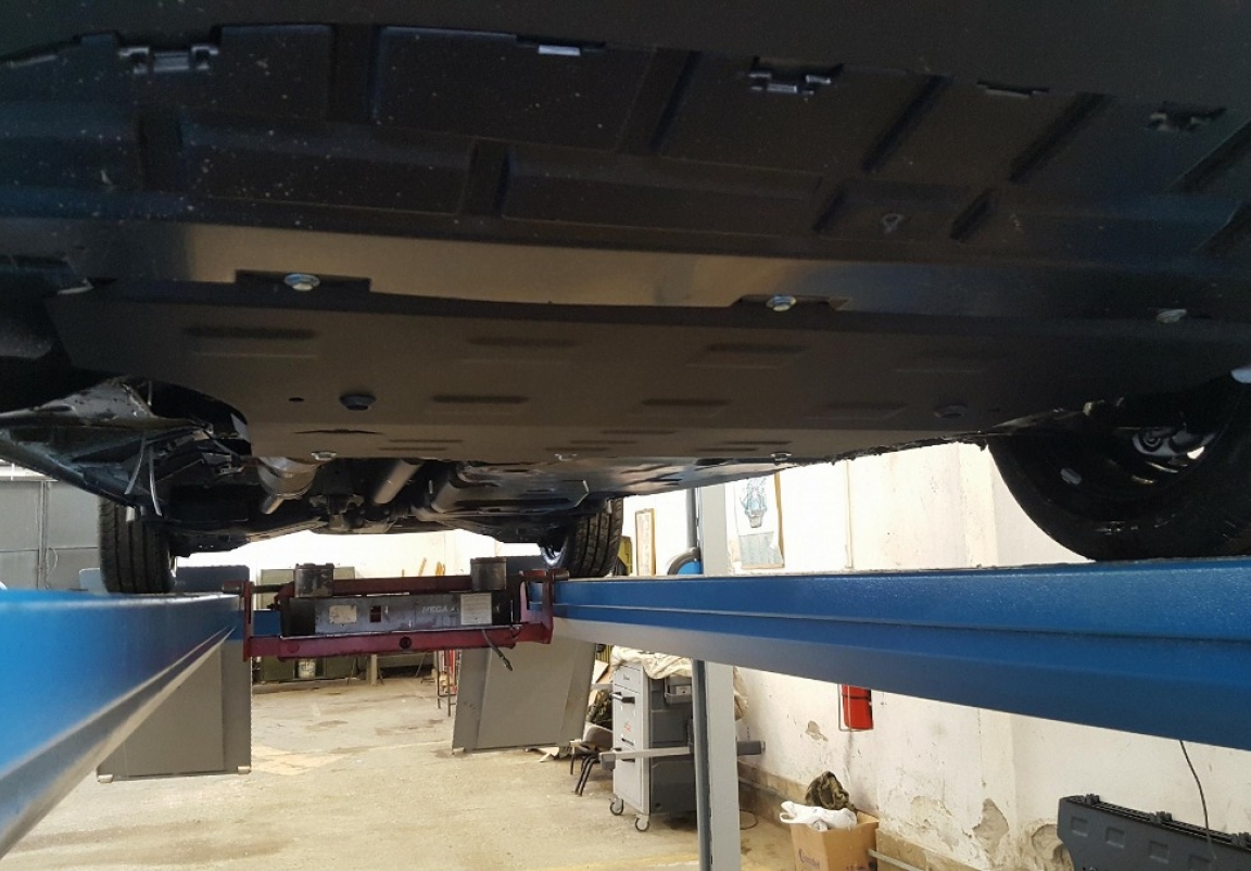 Le cache métallique protège: le bas du moteur, la boîte de vitesses, radiateur, EGR, system STOP&GO Le cache de protection est réalisé en Acier thermolaqué avec une épaisseur de 2.5 mm. Vis, écrous, pinces, tous les accessoires de fixation sont inclus. Toutes les plaques de protection sont revêtues de poudre pour prévenir la corrosion. L'extérieur de la plaque de protection est doté de renforts en Acier thermolaqué, ce qui augmente la résistance aux chocs. |