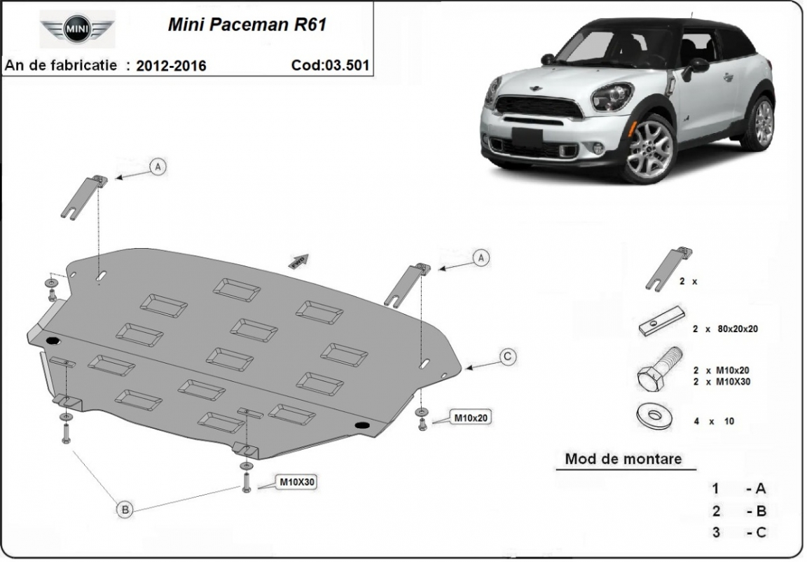 Protection sous moteur et de la boîte de vitesse Mini Paceman R61 (2012-2016)
