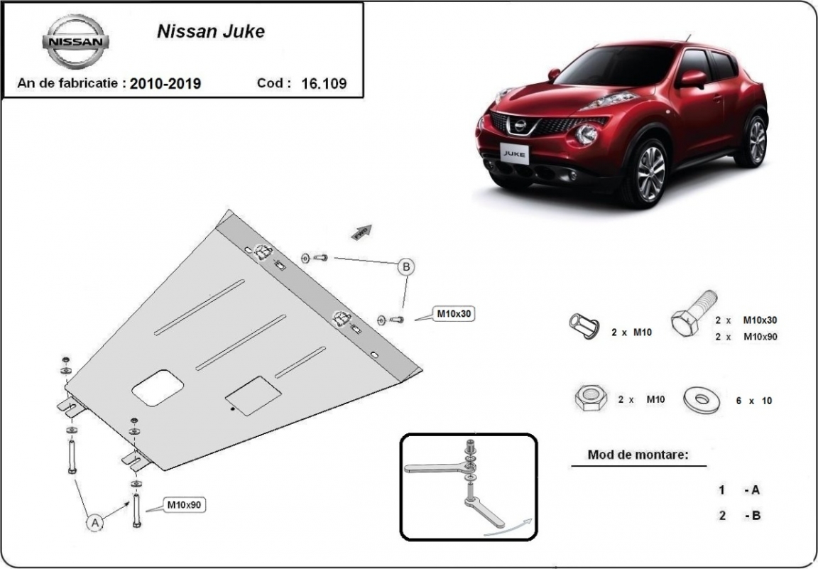 Protection sous moteur et de la boîte de vitesse Nissan Juke (2010-2019)