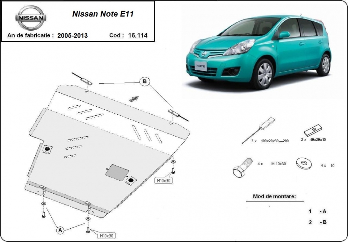 Protection sous moteur et de la boîte de vitesse Nissan Note (2007-2013)