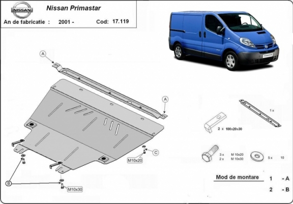 Protection sous moteur et de la boîte de vitesse Nissan Primastar