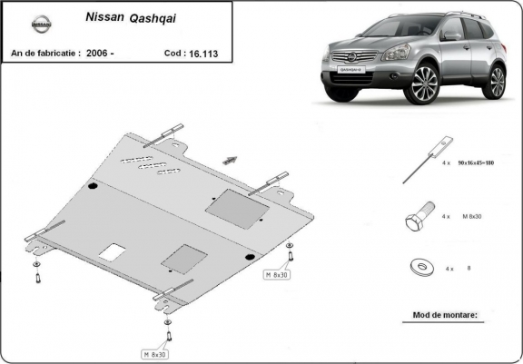 Protection sous moteur et de la boîte de vitesse Nissan Qashqai J10 (2006-2013)