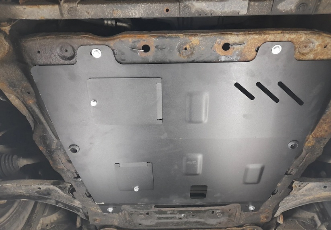 Le cache métallique protège: le bas du moteur, la boîte de vitesses Il y a une ouverture pour le carter d'huile, il n'est donc pas nécessaire de l'enlever pour changer l'huile. Le cache de protection est réalisé en Acier thermolaqué avec une épaisseur de 2 mm. Vis, écrous, pinces, tous les accessoires de fixation sont inclus. Toutes les plaques de protection sont revêtues de poudre pour prévenir la corrosion. L'extérieur de la plaque de protection est doté de renforts en Acier thermolaqué, ce qui augmente la résistance aux chocs. |