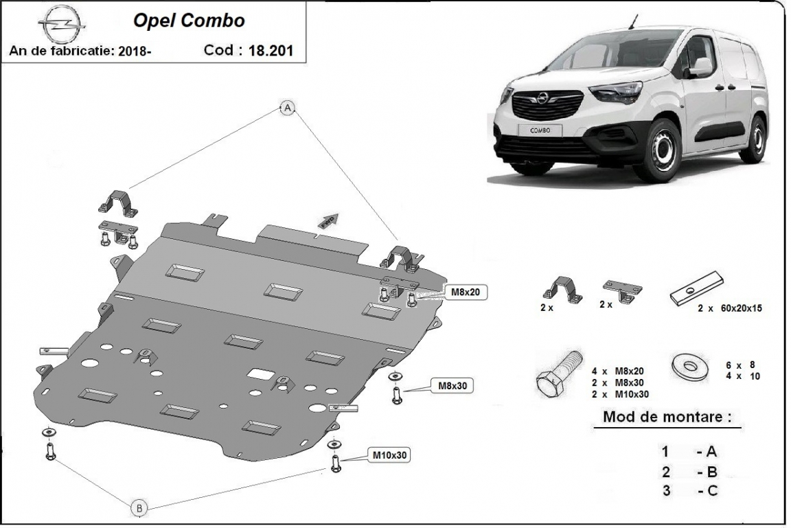 Protection sous moteur et de la boîte de vitesse Opel Combo C (2018-2026)