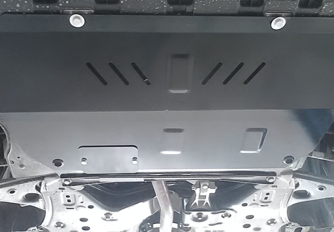 Le cache métallique protège: le bas du moteur, la boîte de vitesses Il y a une ouverture pour le carter d'huile, il n'est donc pas nécessaire de l'enlever pour changer l'huile. Le cache de protection est réalisé en Acier thermolaqué avec une épaisseur de 2 mm. Vis, écrous, pinces, tous les accessoires de fixation sont inclus. Toutes les plaques de protection sont revêtues de poudre pour prévenir la corrosion. L'extérieur de la plaque de protection est doté de renforts en Acier thermolaqué, ce qui augmente la résistance aux chocs. |