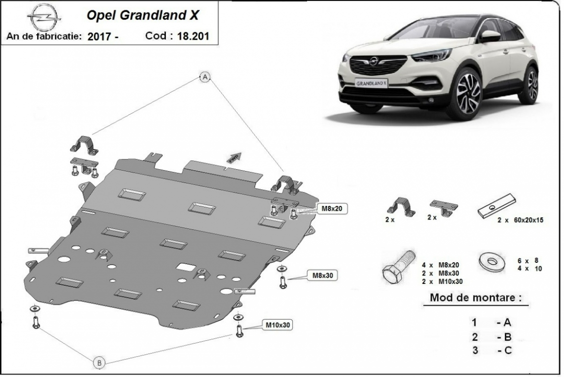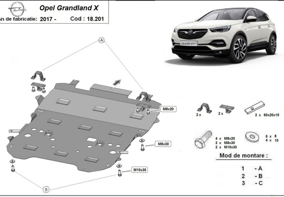 Protection sous moteur et de la boîte de vitesse Opel Grandland X (2017-2026)