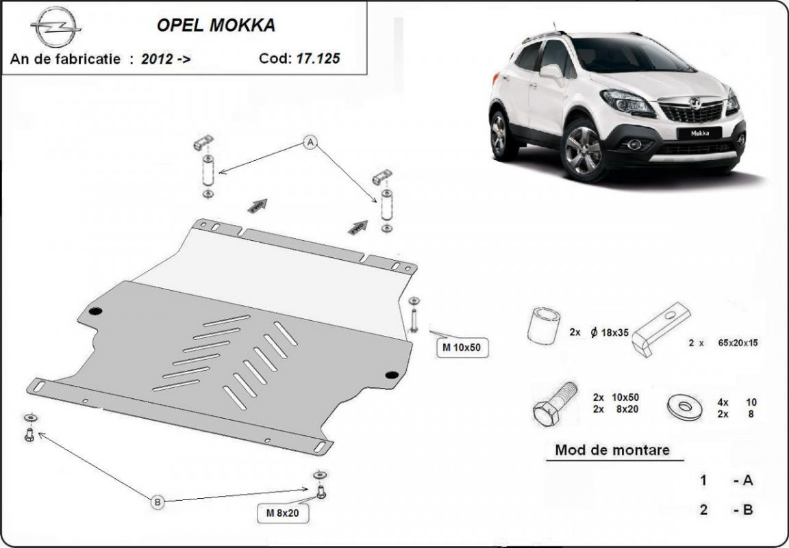 Protection sous moteur et de la boîte de vitesse Opel Mokka A