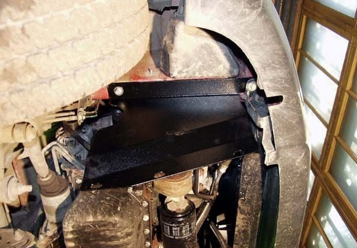 Le cache métallique protège: le bas du moteur, la boîte de vitesses, radiateur, pare-choc avant Il y a une ouverture pour le carter d'huile, il n'est donc pas nécessaire de l'enlever pour changer l'huile. Le cache de protection est réalisé en Acier thermolaqué avec une épaisseur de 2 mm. Vis, écrous, pinces, tous les accessoires de fixation sont inclus. Toutes les plaques de protection sont revêtues de poudre pour prévenir la corrosion. L'extérieur de la plaque de protection est doté de renforts en Acier thermolaqué, ce qui augmente la résistance aux chocs. |
