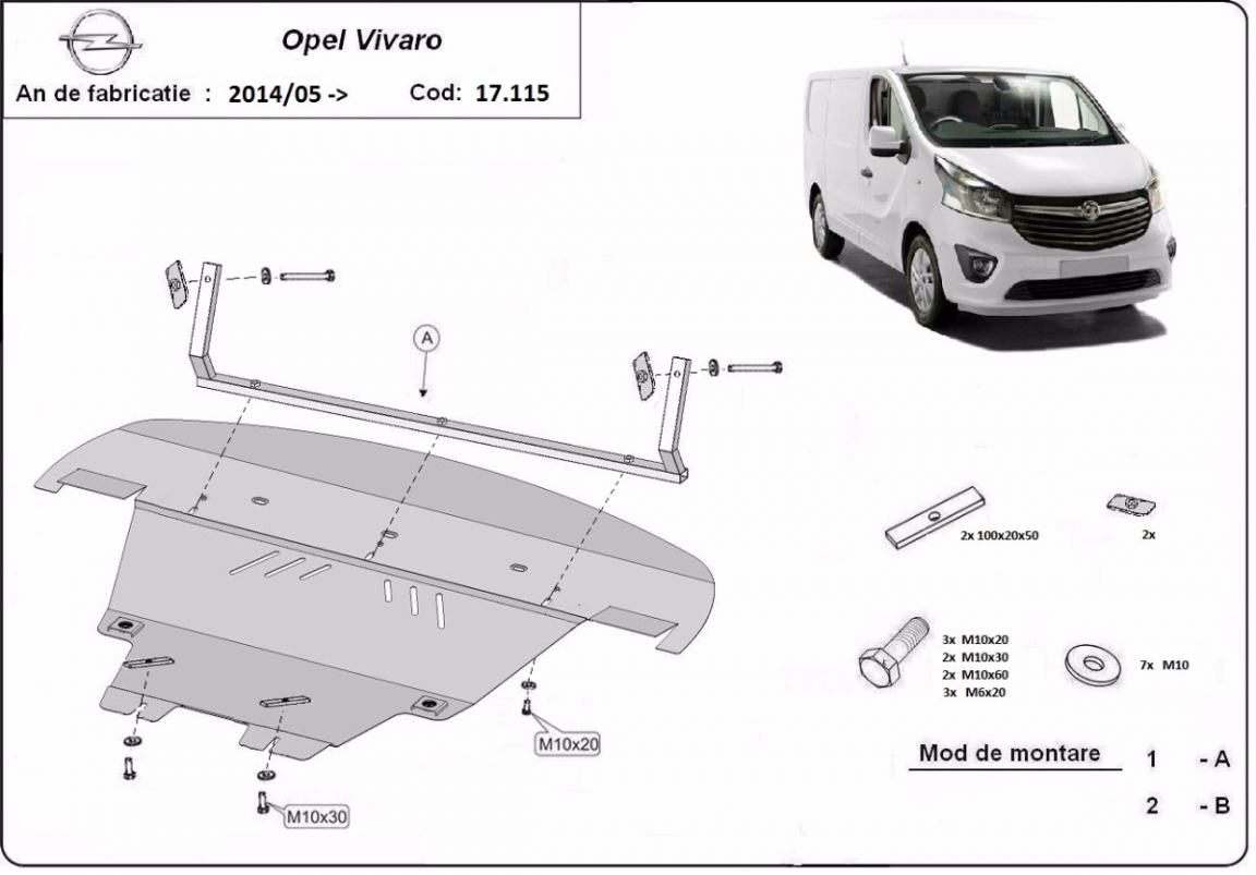 Protection sous moteur et de la boîte de vitesse Opel Vivaro B (2014-2019)