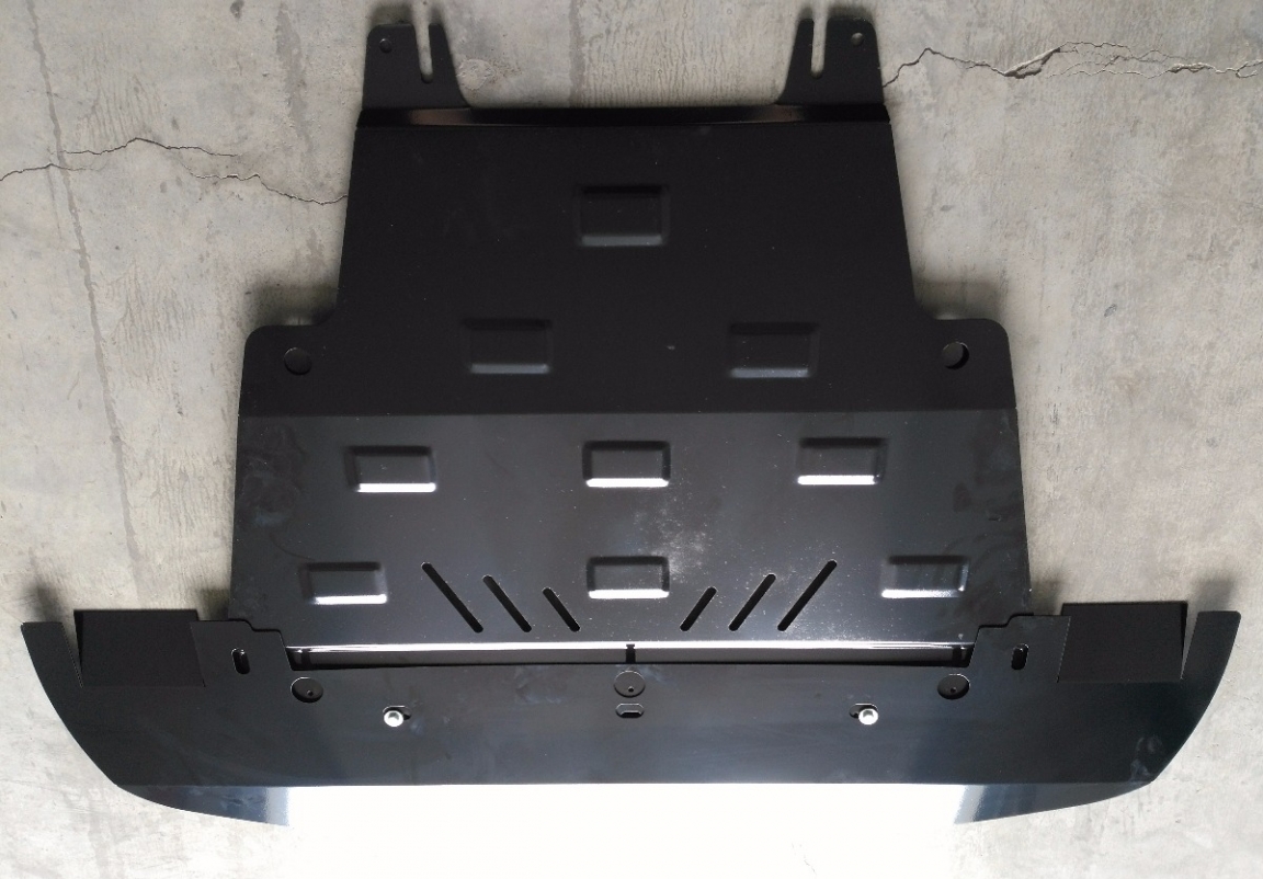 Le cache métallique protège: le bas du moteur, la boîte de vitesses, radiateur, pare-choc avant Le cache de protection est réalisé en Acier thermolaqué avec une épaisseur de 2 mm. Vis, écrous, pinces, tous les accessoires de fixation sont inclus. Toutes les plaques de protection sont revêtues de poudre pour prévenir la corrosion. L'extérieur de la plaque de protection est doté de renforts en Acier thermolaqué, ce qui augmente la résistance aux chocs. |