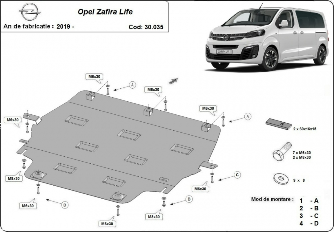 Protection sous moteur et de la boîte de vitesse Opel Zafira Life (2019-2026)