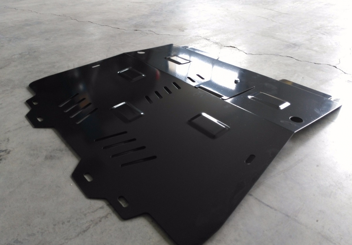 Le cache métallique protège: le bas du moteur, la boîte de vitesses, radiateur Il y a une ouverture pour le carter d'huile, il n'est donc pas nécessaire de l'enlever pour changer l'huile. Le cache de protection est réalisé en Acier thermolaqué avec une épaisseur de 2 mm. Vis, écrous, pinces, tous les accessoires de fixation sont inclus. Toutes les plaques de protection sont revêtues de poudre pour prévenir la corrosion. L'extérieur de la plaque de protection est doté de renforts en Acier thermolaqué, ce qui augmente la résistance aux chocs. |