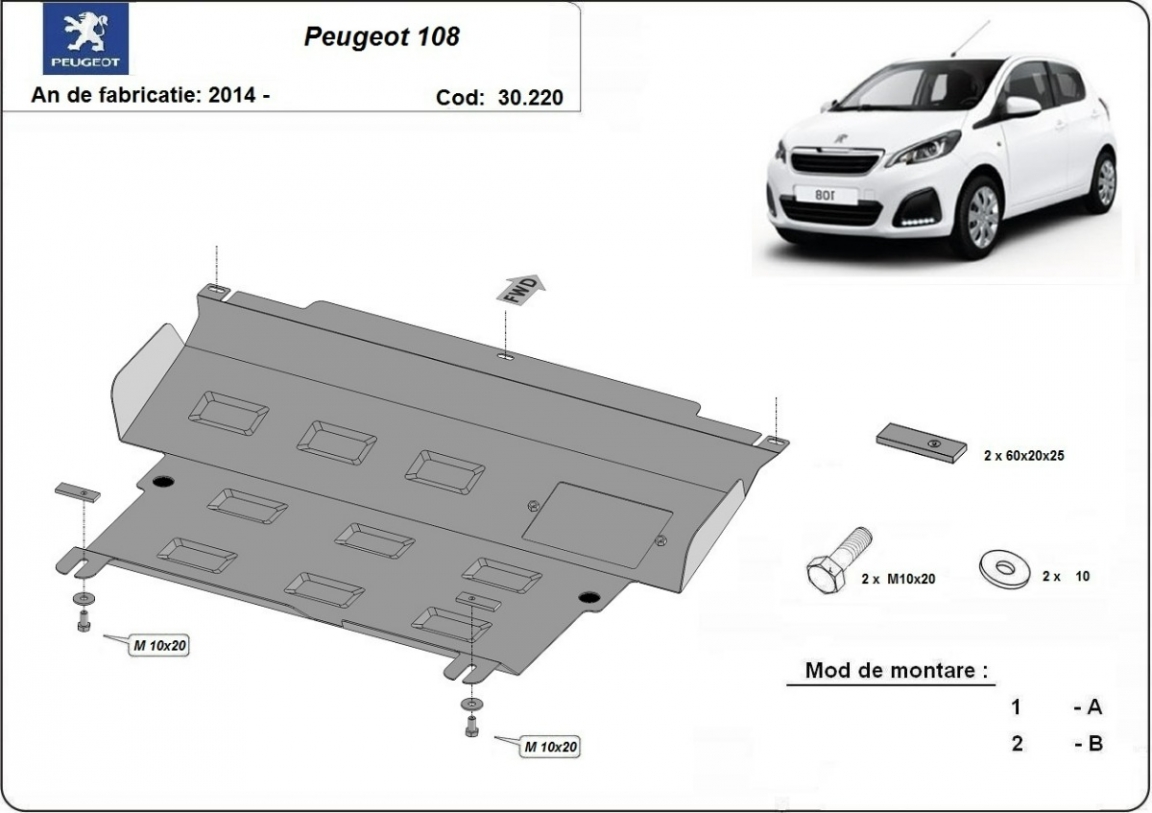 Protection sous moteur et de la boîte de vitesse Peugeot 108 (2014-2021)
