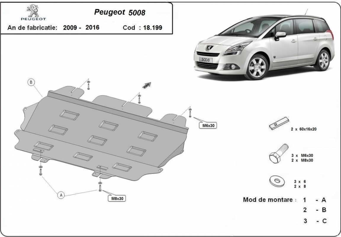 Protection sous moteur et de la boîte de vitesse Peugeot 5008 (2009-2017)