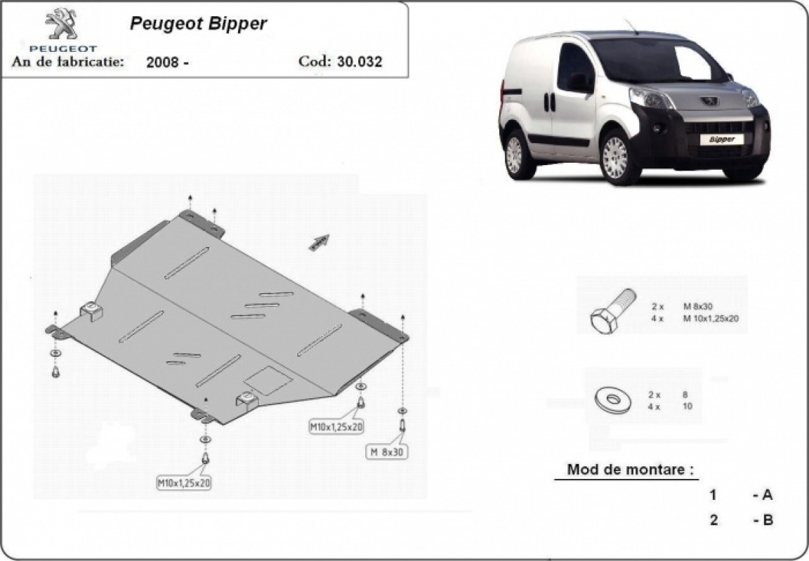 Protection sous moteur et de la boîte de vitesse Peugeot Bipper