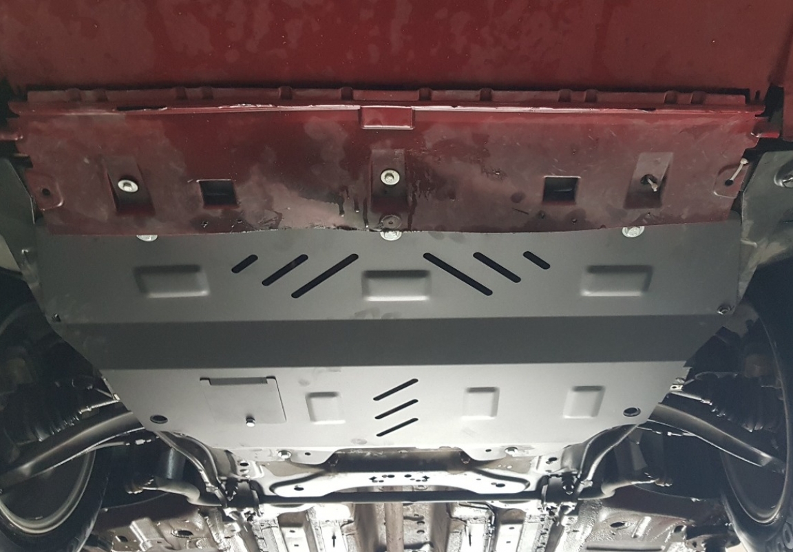 Le cache métallique protège: le bas du moteur, la boîte de vitesses Il y a une ouverture pour le carter d'huile, il n'est donc pas nécessaire de l'enlever pour changer l'huile. Le cache de protection est réalisé en Acier thermolaqué avec une épaisseur de 2 mm. Vis, écrous, pinces, tous les accessoires de fixation sont inclus. Toutes les plaques de protection sont revêtues de poudre pour prévenir la corrosion. L'extérieur de la plaque de protection est doté de renforts en Acier thermolaqué, ce qui augmente la résistance aux chocs. |