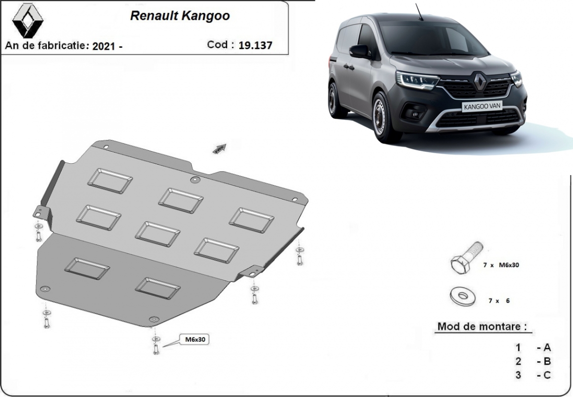 Protection sous moteur et de la boîte de vitesse Renault Kangoo Van (2021-2026)