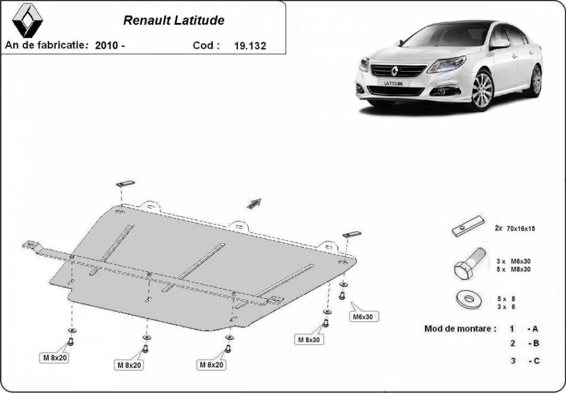Protection sous moteur et de la boîte de vitesse Renault Latitude (2010-2015)
