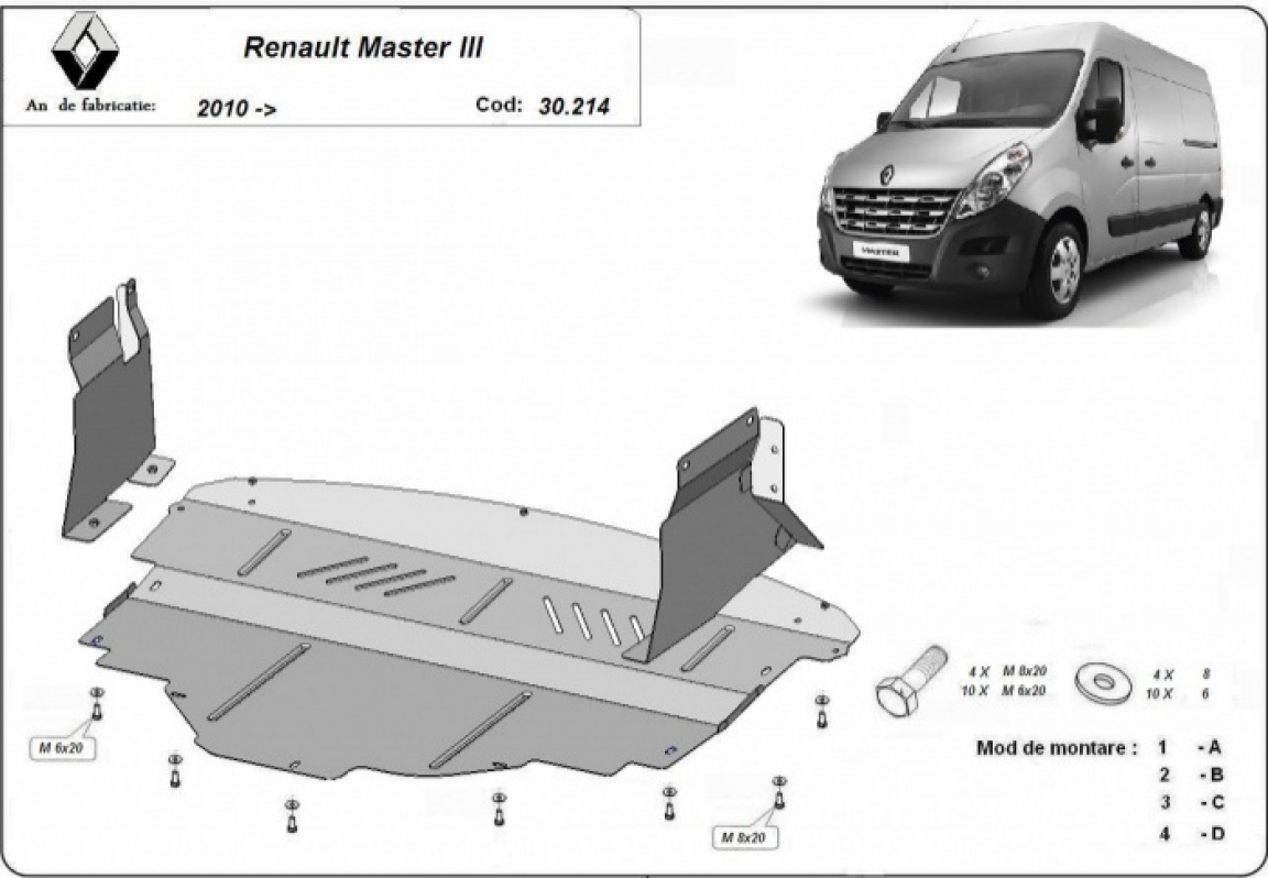 Protection sous moteur et de la boîte de vitesse Renault Master 3 (2010-2024)