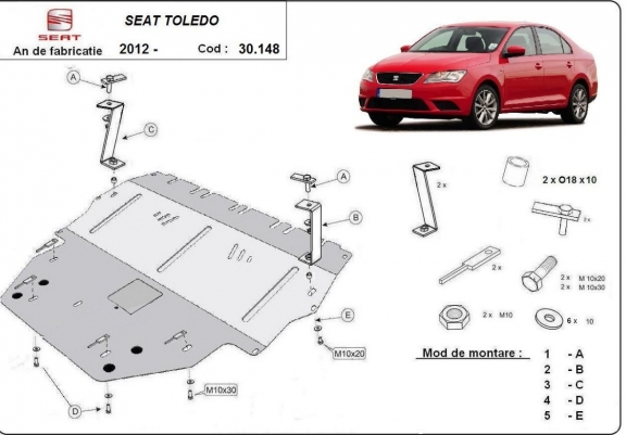 Protection sous moteur et de la boîte de vitesse Seat Toledo 4 (2012-2019)