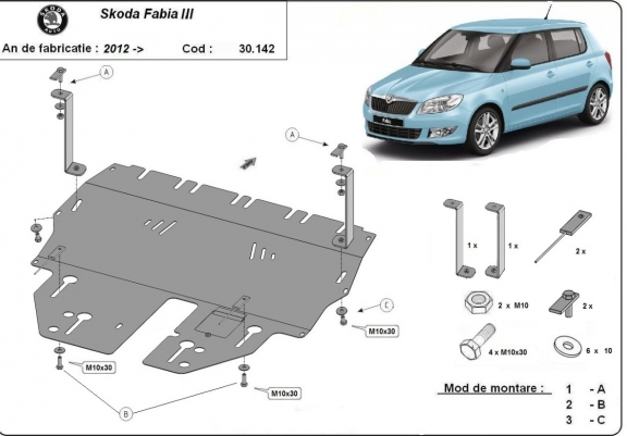 Protection sous moteur et de la boîte de vitesse Skoda Fabia 3