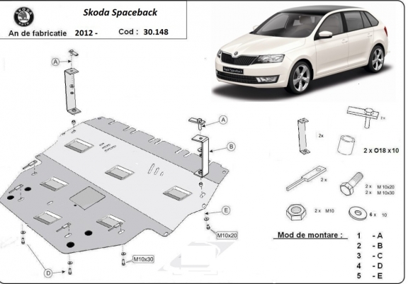 Protection sous moteur et de la boîte de vitesse Skoda Spaceback