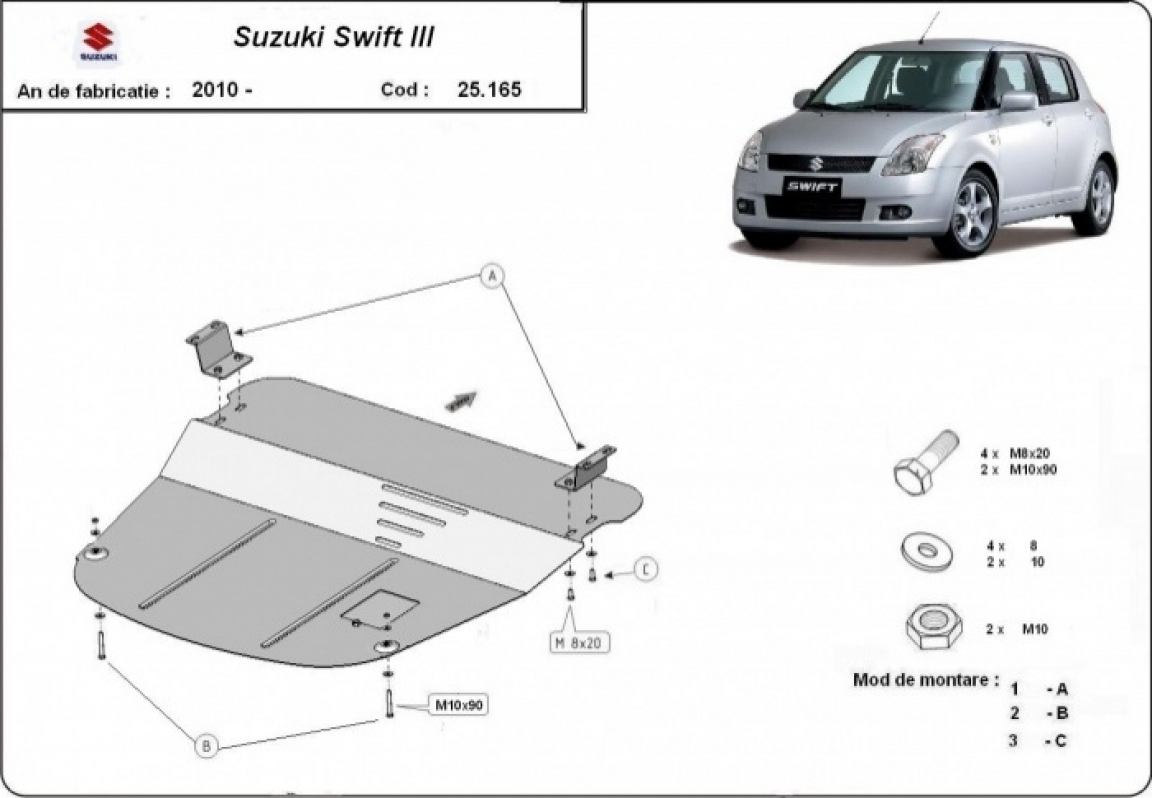 Protection sous moteur et de la boîte de vitesse Suzuki Swift 3