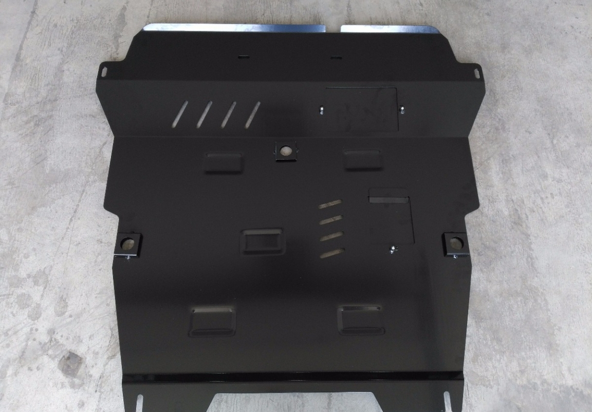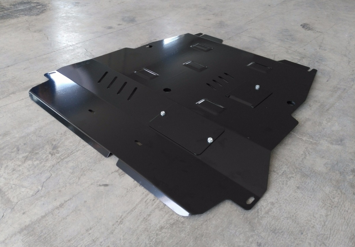 Le cache métallique protège: le bas du moteur, la boîte de vitesses Il y a une ouverture pour le carter d'huile, il n'est donc pas nécessaire de l'enlever pour changer l'huile. Le cache de protection est réalisé en Acier thermolaqué avec une épaisseur de 2,5 mm. Vis, écrous, pinces, tous les accessoires de fixation sont inclus. Toutes les plaques de protection sont revêtues de poudre pour prévenir la corrosion. L'extérieur de la plaque de protection est doté de renforts en Acier thermolaqué, ce qui augmente la résistance aux chocs. |