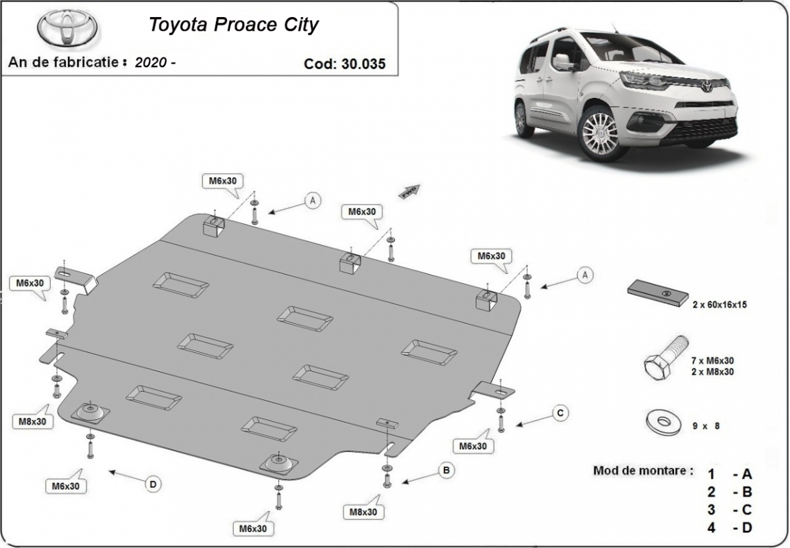 Protection sous moteur et de la boîte de vitesse Toyota Proace Verso (2020-2026)