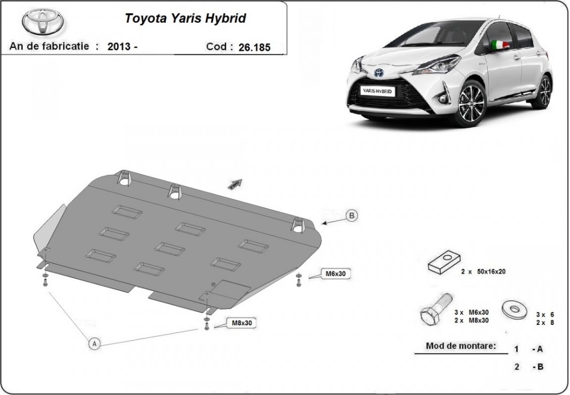 Protection sous moteur et de la boîte de vitesse Toyota Yaris XP150 (2013-2021)