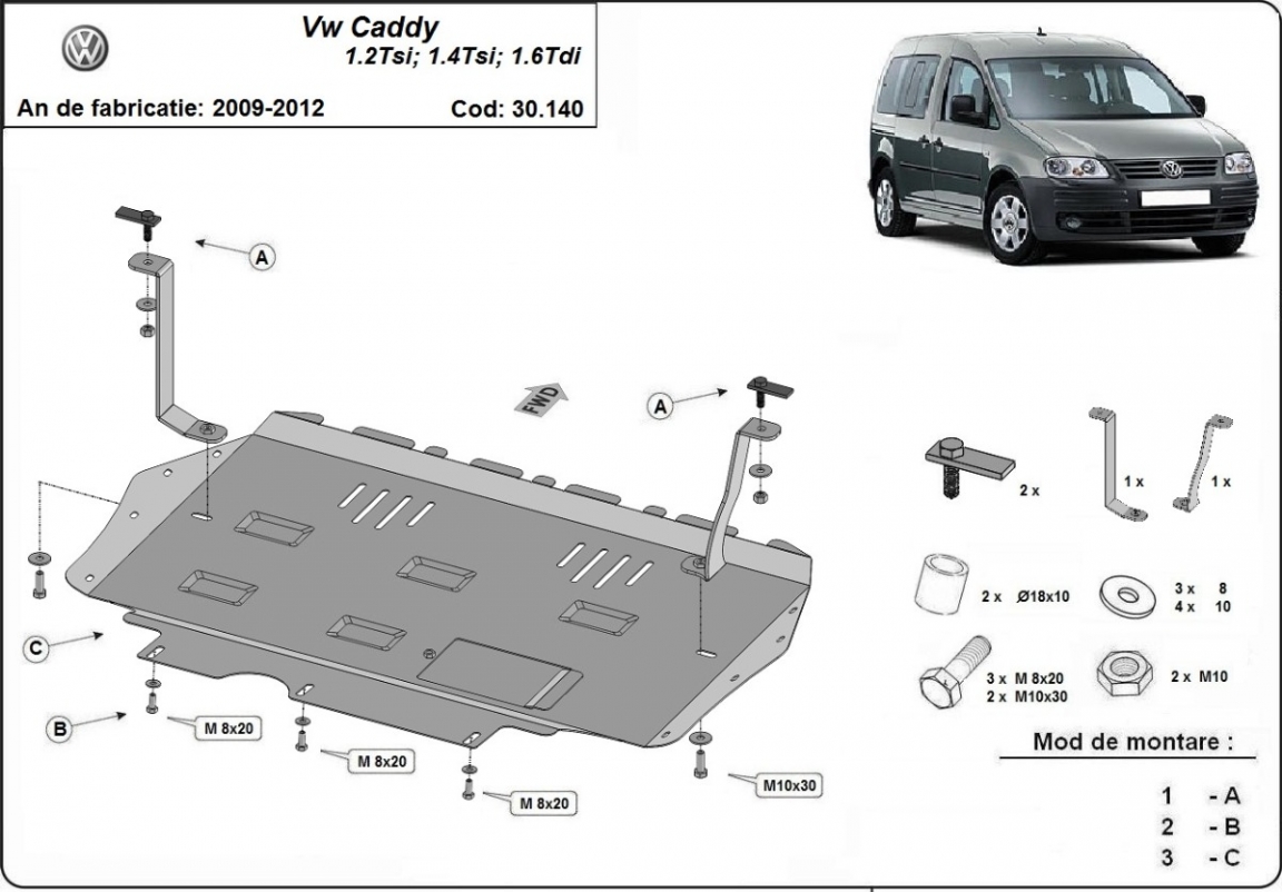Protection sous moteur et de la boîte de vitesse Volkswagen Caddy (2010-2012)