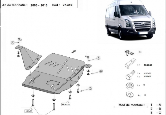 Protection sous moteur et de la boîte de vitesse Volkswagen Crafter (2006-2016)