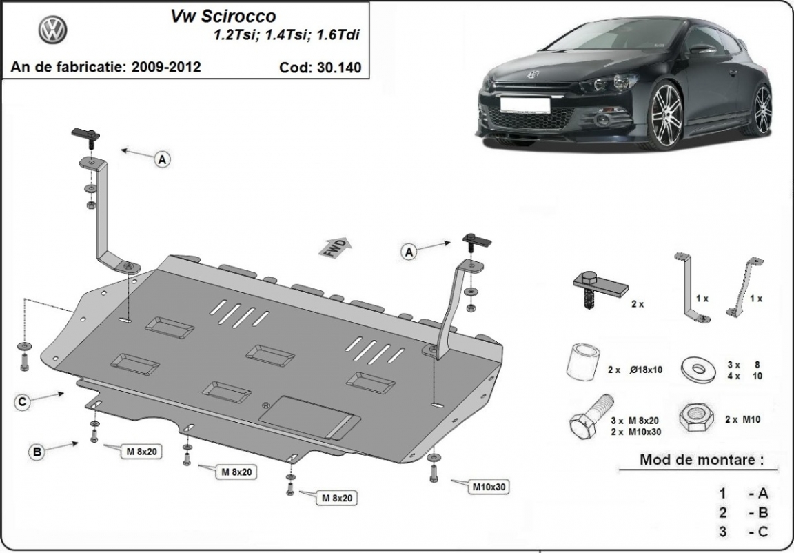 Protection sous moteur et de la boîte de vitesse Volkswagen Scirocco (2008-2017)