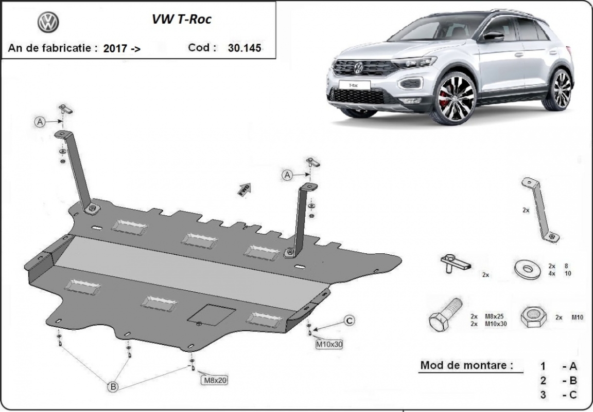 Protection sous moteur et de la boîte de vitesse Volkswagen T-Roc - boîte de vitesses manuelle (2017-2026)